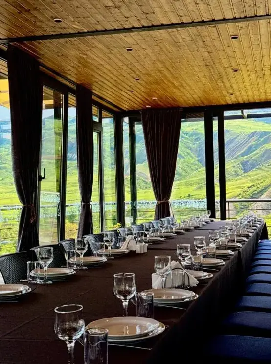 Güzel manzaralar, nazik ve meşgul hizmet. Otel çalışanları, geç kayıt zamanına rağmen lezzetli bir akşam yemeği ve kısa bir Gürcü şarkıları konseri ile kabul etti. Çok teşekkür ederim, Gürcistan'ı her düşündüğümüzde bu konaklamayı hatırlayacağız.